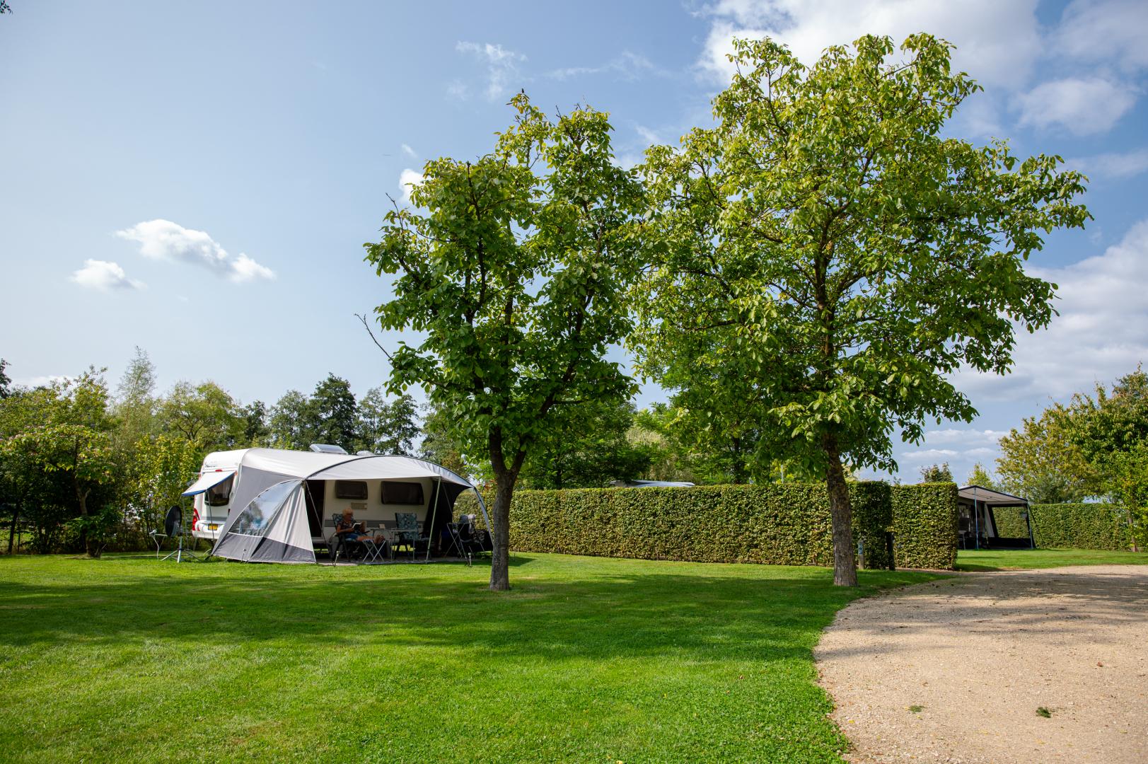 Ein Aufenthalt auf dem Campingplatz „Domein Groot Besselink“ bedeutet eins werden mit der Natur. Der Campingplatz liegt in der Landschaft des Achterhoek versteckt, aber nur einen Katzensprung von der Hansestadt Zutphen und der kleinen ländlichen Stadt Lochem entfernt. Eine lange, von Bäumen gesäumte Auffahrt bringt Sie auf unser Gelände: eine Oase der Ruhe am Ufer des Flusses Berkel mit großen, schön gestalteten Stellplätzen. Darüber hinaus bieten wir einige nachhaltig gebaute Unterkünfte als Ferienhäuser an.